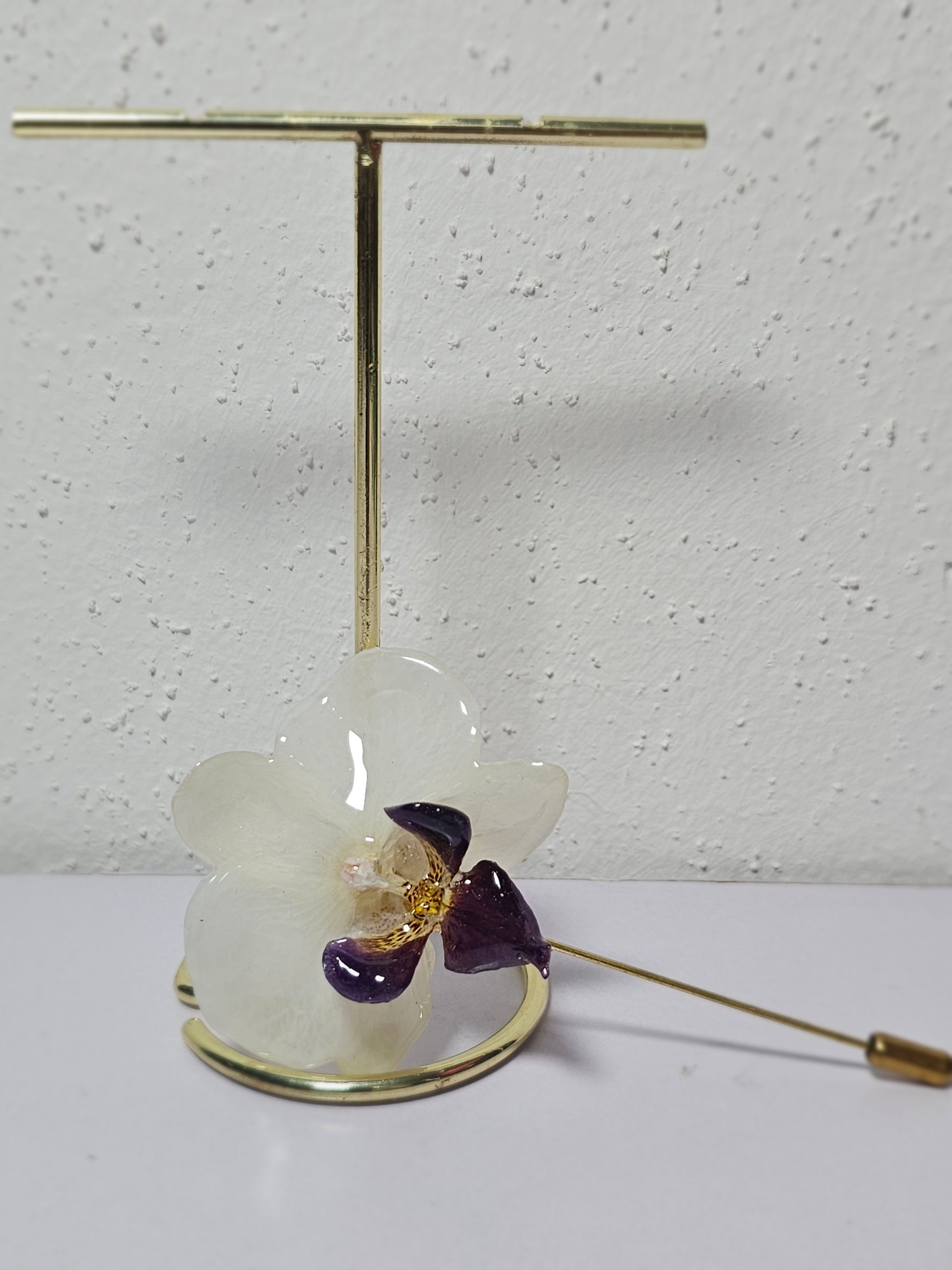 🌸 Alfiler de Solapa con Mini Orquídea Blanca Morado💜